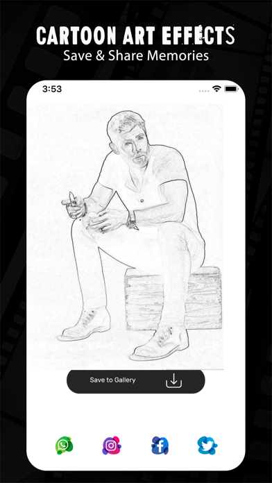 Cartoon Effects On Photo Moments Very easy to use and user-friendly. You can convert your photos into cartoon-like pictures with only one button click. Sharing and saving pics are also supported. You Can add custom overlay to enhance your cartoons pictures. Features: - Import your own photo or capture using camera. - Change your photo to cartoon like pictures in just one click on tapping Art filter button. - Also enhance images using brightness, contrast, emboss tools. - Add various stickers categories to your image. - 20+ Cartoon art effects. - 20+ Sketch art effects. - 20+ Draw art effects. - 10+ Color art effects. - 10+ Stain art effects. - Share your pictures to social media. SUBSCRIPTION: You can subscribe to premium features, choosing from the following plans: – 1 Month – 12 Months – One Time Purchase The subscription automatically renews unless auto-renewal is turned off at least 24 hours before the end of the current period. Payment will be charged to your iTunes account at confirmation of purchase. Account will be charged for renewal within 24 hours of the end of the current period, and the cost of the renewal will be provided. Subscriptions may be managed by the user. Auto-renewal may be turned off by going to the user’s Account Settings after purchase. No cancellation of the current subscription is allowed during active subscription period. Any unused portion of a free trial period, if offered, will be forfeited when the user purchases a subscription to that publication. TERMS OF USE: http://marbleroseapps.goodjobsapps.com/?page_id=9 PRIVACY POLICY: http://marbleroseapps.goodjobsapps.com/?page_id=7