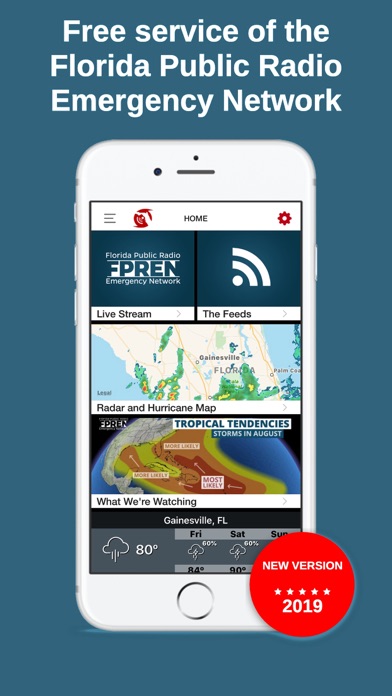 Everything you need, nothing you don't. Florida Storms is not just another weather app with a radar. It's a clean and fast interactive map that alerts you to every storm, while at the same time delivers credible real-‐time audio and text alerts from the Florida Public Radio Emergency Network. Using a combination of Baron's exclusive storm track algorithms and the expertise of a meteorologist, you're certain to receive the most up-to-date information on any potential weather hazard. View the latest tropical weather updates from the National Hurricane Center, find out if you’re in an evacuation zone, check if you're in the path of a dangerous storm surge, or just review a checklist of items your family should have in case of a weather emergency. Once you have Florida Storms, you won't need multiple apps to prepare for the next "big one". Whether it's just a routine lightning storm that might send you indoors or a major hurricane threatening your neighborhood, Florida Storms is the simplest and fastest way to stay informed of mother nature's next move. Features of Florida Storms include... - Live radio stream of the nearest Florida Public Radio Emergency Network partner station, with option to choose from 12 others in the state in case of evacuation or traveling - Push notifications from multiple sources, including the National Weather Service, the National Hurricane Center, Baron's exclusive Doppler radar, and local emergency management personnel - The ability to set up alerts for other locations, such as your second home, vacation or evacuation destination. - Interactive real-time mapping of high-resolution radar, lightning, future radar, satellite, hurricanes and forecast models. - Our favorite feature: “The feeds” offer real-time filtering of information from official sources, such as the nearest National Weather Service office, the National Hurricane Center, Florida Department of Transportation, the FPREN Storm Center and local emergency management offices. - A simple, effective way to learn how to prepare for the next weather disaster, including what to do before, during, and after a storm - Updates from certified FPREN meteorologists, including Facebook Live videos and blog articles. Florida Storms is completely free and developed by the Florida Public Radio Emergency Network, in partnership with the University of Florida and Baron Critical Weather Intelligence. Updates from the Storm Center are provided by a team of certified meteorologists at the University of Florida College of Journalism and Communications, and are also available on your local Florida public radio station's website or over the air. The Florida Public Radio Emergency Network partners stations are WUWF (Pensacola), WFSU (Tallahassee), WKGC (Panama City), WUFT (Gainesville), WJCT (Jacksonville), WMFE (Orlando), WMNF and WUSF (Tampa-‐St. Petersburg), WFIT (Melbourne), WQCS (Ft. Pierce), WGCU (Ft. Myers), WDNA (Miami, and WLRN (Miami). Repeater stations include WJUF (Inverness), WMKO (Marco), WUCF (Orlando), WFSQ (Tallahassee), and WXEL (Miami). More information about the Florida Public Radio Emergency Network can be found at www.floridastorms.org.