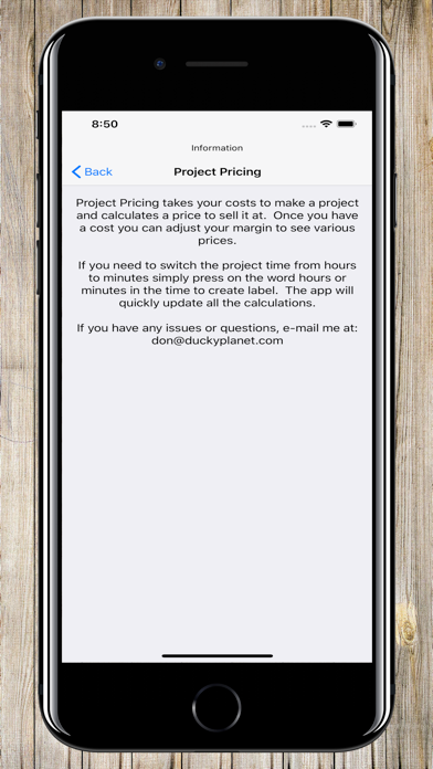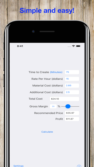 I started off selling small handmade items on various sites. Initially, I struggled with pricing. How do you balance costs, while at the same time making a decent profit. To achieve this balance I spent a lot of time with paper and calculators trying various options. I eventually decided that there should be an app to do it for me. Project Pricing was written to quickly solve that problem. While, I personally use it for Etsy sales it isn't tied to that platform. I left the options open to be of use in as many cases as possible. If you usually time your project building in minutes, simply click on the word hours to switch to minutes. You can switch back by pressing the word minutes and it will all be converted for you. The app allows you to put a length of time to construct the project, the amount per hour you want to get paid, material cost and other costs you may have. Using that information it will come up with your total cost. Using the cost, you set a margin and it will tell you the price you should charge along with the profit you will make. It doesn't get any easier than that.