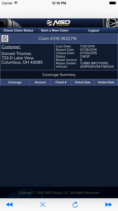 This app allows authorized dealerships to initiate and track their NSD/Dealer Tire road hazard claims. Only credentialed users will have access.