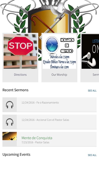 The Official App of Iglesia Gracia Divina Dallas. Iglesia Gracia Divina Dallas is a Christ Centered family focusing on spreading the Gospel of Jesus Christ through love, humility and repentance. We teach the Bible, verse by verse, chapter by chapter. Our Vision: I. Reach all the lost souls that live without peace, hope, and salvation. II. Reconciling brothers and sisters who once knew the true God and departed. III. Present a merciful God of love towards everyone with deeds, words and actions. IV. Create groups of healthy families to build strong church and communities. V. Prepare members to climb to the next level and become Leaders. VI. Exalt Christ through our service to others. VII. Live a life according to God’s word. LA MISIÓN DEL MINISTERIO GRACIA DIVINA ES: I. Alcanzara todas almas perdidas que viven sin paz, esperanza, y salvación. II. Reconciliar a hermanos y hermanas que una vez conocieron al Dios verdadero y se han apartado. III. Presentar a un Dios lleno de misericordia y amor hacia ellos con hechos, palabras y acciones. IV. Crear grupos de familias que trabajen juntas para construir hogar, comunidades fuerte, y saludable por medio de la Palabra de Dios. V. Preparar a miembros para escalar al siguiente nivel y ser líderes. VI. Exaltar a Cristo por medio de nuestro servicio a los demás. VI. Vivir un vida según la palabra de Dios.