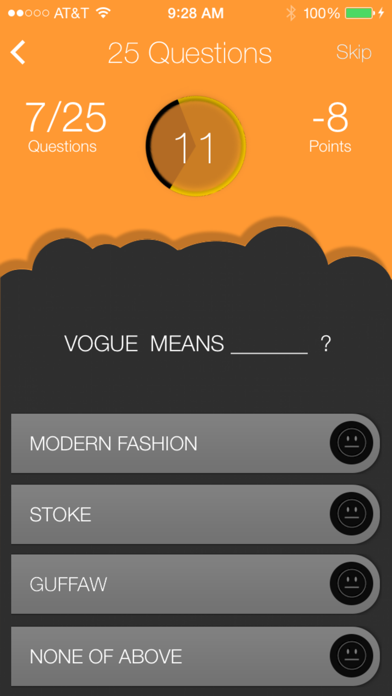 This app has GRE Vocabulary Quiz for 25 Words. It is vital to improve the Vocabulary for good score on GRE Verbal. It is in Multiple Choice format with Timed score. There are negative points for incorrect answers. This is fun way to learn new words.