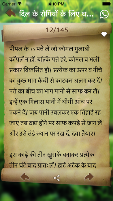 Ayurveda is the medical system of traditional medicine in India. It is the experience of many centuries in medical practice. This app contains all disease category in hindi language and also their “Ayurvedic cure” description in hindi language. Additional functionality is “Add to Favourites”. In every disease description there is a favourite button denoted as star. You can add your disease description in favourites category for instantly show in future. Since Ayurveda is a holistic and natural system of healing, it is only to be expected that the simplest and most common-place of items shall be used as ingredients for creating some very easy-to-make but most effective cures for and preventives against day-to-day ailments.