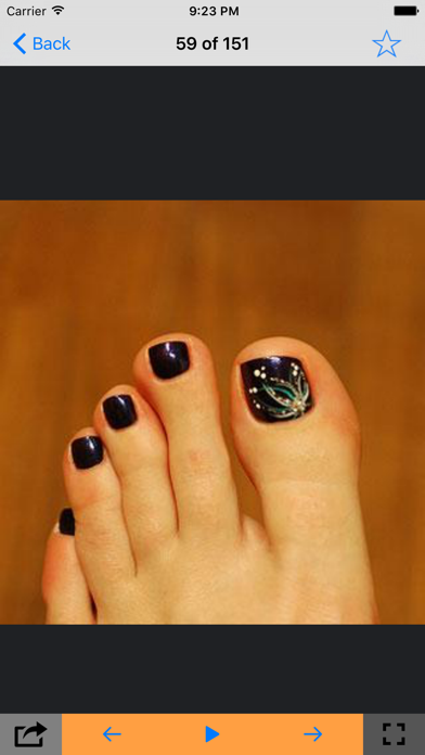 Prepare your feet and make them look gorgeous with "Best Toenail Designs app! Lots of beautiful toenail designs: flowers, fruits and other colourful designs! Application Features: - Awesome collection of trending Toes Nail styles. - You can share all images to others. - You can mark images as favourite - Book type Envelope to see your favourite images - Easy to use - Works offline without data connection