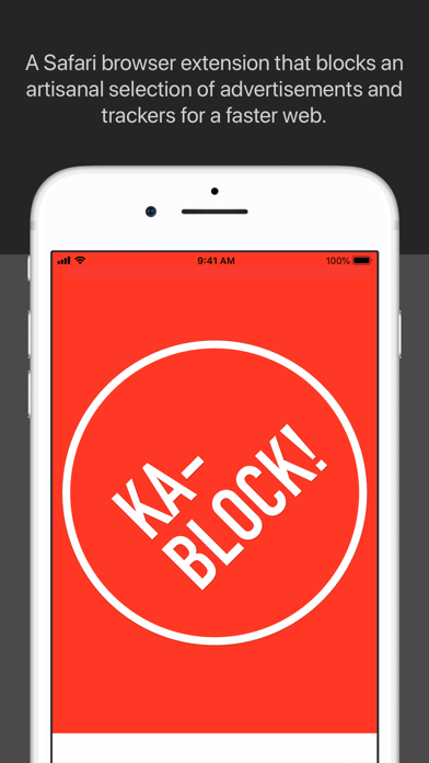 Ka-Block! is a content blocker for Safari that prevents ads and tracking scripts from slowing down web pages you visit. Many sites use third-party scripts to track your behavior across the web, causing pages to load slowly and draining your phone’s battery. Blocking these scripts dramatically improves page load time, data usage, and battery life. - Fast, curated filter list - Open source - Also available for Safari on Mac Protecting privacy and performance on the web is important. We hope you enjoy Ka-Block!