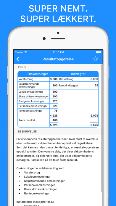 App'en "VØ på HHX" er udviklet for at kunne hjælpe elever på HHX med undervisningen i virksomhedsøkonomi (VØ). Med app'en kan du nemt og hurtigt slå de ting op, du er i tvivl om, og app'en fungerer således som et godt supplement til den daglige undervisning. I app'en er forklaringerne desuden skrevet simpelt, så det er nemt at forstå. INDEHOLDER: - Sider med 40 forskellige slags indhold fordelt på 8 kategorier! - Nemt og overskueligt layout! - Tekst der er let at forstå! - Lækker søgefunktion, så du hurtigt kan finde det, du skal bruge! - Bruger du en specifik side ofte? Tilføj den som favorit! - EKSTRA: I app'en kan du desuden udregne nøgletal på nem og hurtig vis! Hvad venter du på? Download den før din sidemand, og bliv hurtigere færdig med VØ-lektierne end de andre!