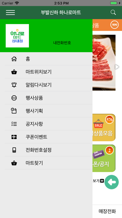 스마트하나로마트는 농협 하나로마트에서 월2회 실시하는 전단행사 상품 및 매일 변경되는 상품의 가격을 즉시 확인할수 있는 상품 알림 앱 입니다. 1. 오늘의 특가, 생활용품 , 공산상품 , 농/수/축산등 카테고리별로 상품을 안내합니다. 2. 특별 할인 및 신규 상품에 대하여 알림 서비스를 제공합니다. 3. 앱 설치 고객님의 휴대폰번호로 상품 할인 쿠폰을 보내 드립니다. 4. 앱에서 회원가입 없이 간편하게 상품을 주문할수 있습니다. 5. 상시 일반 상품 안내 . 하나로마트 앱 처음 시작후 자주가는 하나로마트를 등록하세요 . 앱 내에서 상품주문 (장바구니), 쿠폰, 출석 스템프 등 하나로마트로 부터 혜택을 받으시려면 [메뉴]-[전화번호설정]에서 전화번호를 등록 하세요