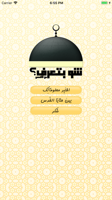 شو بتعرف عن الاقصى ,, تطبيق يساعدك على معرفة وحفظ معلومات حول القدس والمسجد الاقصى عمن طريق مسابقة لطيفة .. كما يمكنك من خلاله معرفة المسافة التي بينك وبين المسجد الاقصى .. حمله واختبر معلوماتك واستمتع ..