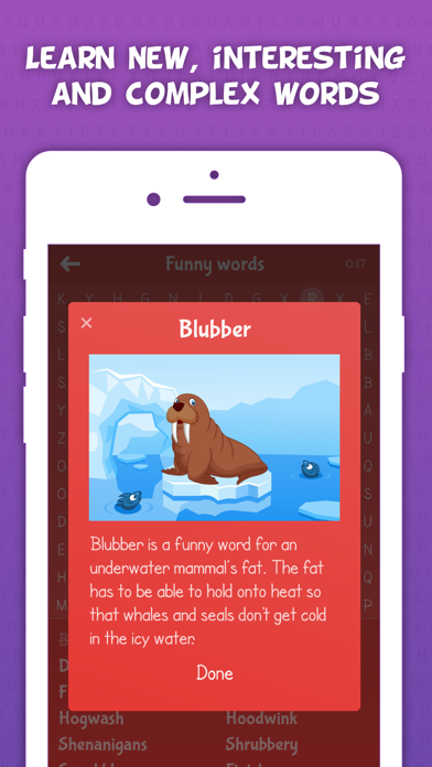 Parents around the world are using Word Magic to improve their children's vocabulary whilst they have fun. Word Magic has beautiful word search puzzles that familiarise kids with complex words. Word Magic has re-invented the classic word search game by giving players easy to understand descriptions after they find any word. This helps them really understand the word and through our highly customised word repetition system, we can improve children's retention of these complex words. The best part - children love Word Magic! It's beautiful graphics and engaging sounds ensure children have an amazing experience with the puzzles. They will be playing for ages trying to earn their stars, and you can be confident they are learning at the same time! Here's a quick overview of why we think Word Magic is great: * Teach your children complex words with easy to understand descriptions * Beautiful and engaging graphics with a time-proven puzzle system * Algorithmically generated puzzles means children can play the same level hundred of times, driving better word recognition and understanding Get in touch with us to suggest your own puzzles too :)