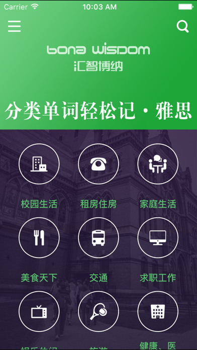 雅思考试必备,助您轻松突破新雅思考试单词关。《分类单词轻松记—雅思》2009年6月第1版第1次印刷手机版同步发行,根据新托福特点,收录了5000余条常考词汇;在每个类别之前列举了该类的重点词组与搭配,供考生预习测验,并辅以小段助考引言,提示复习重点,引导考生学习;特别提示了每个单词可能出现的题型,帮助考生目标明确、有侧重地复习;另外还结合托福考生的特点,编加适合他们的记忆方法,包括词根词缀、拆分、图形记忆等方法。记忆法与分类记忆相结合,帮助考生彻底冲破单词记忆的屏障。 海词词典携手北京汇智博纳教育科技有限公司官方权威正版发布,具有手机上的便捷学习功能,还有清晰发音、生词收藏和复习背诵等辅助学习功能。选择正版软件,学习更有保障!(版权所有,盗版必究) 特色: (1)主题单词打包记,背一记十不费力:将词汇按意群分到贴近考试的多个主题之下,同时还区分了核心单词与认知单词,辅以生动活泼、接近生活的例句。 (2)收词全面重点明,记忆方法伴你行:提示了可能出现的题型,再辅以各种记忆方法助您冲破单词记忆的屏障。 (3)云生词本:采用云端同步技术,可以随时随地收藏和复习生词。 (4)真人标准发音。