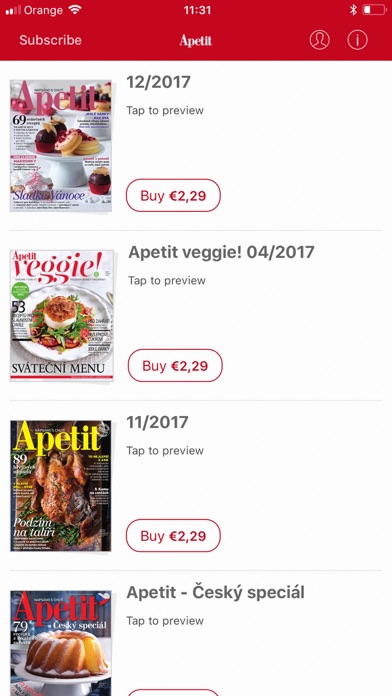 Apetit je první časopis s recepty, které opravdu fungují. Vyzkoušejte sami! Je totiž psán s opravdovou chutí a vášní pro jídlo, které nemusí být jen povinností, ale krásným hobby a životním stylem. Apetit je možné číst v tištěné i digitální podobě. V nabídce níže najdete výhodné kombinované předplatné (tištěný + digitál), díky kterému můžete číst na libovolných mobilech, tabletech a počítačích. Informace o předplatném: V aplikaci klepněte na „Předplatné“. Připraveny jsou varianty na šest měsíců za 10.99 € a dvanáct měsíců za 22.99 €. Platba je realizována přes váš účet u Apple. Předplatné se automaticky prodlužuje, pokud není zrušeno 24 hodin před vypršením předplaceného období. Správu předplatného najdete v iPhone/iPadu v »Nastavení« |»iTunes a App Store« | »Apple ID« a »Předplatná | Spravovat«. Vydavatel BURDA Praha, spol. s r.o. nabízí výhodné varianty tištěného i kombinovaného předplatného http://eshop.burda.cz, které umožňuje číst časopisy i na dalších mobilech, tabletech a počítačích. Ochrana osobních údajů Všechny osobní údaje, které poskytne zákazník/objednavatel vydavateli BURDA Praha, spol. s r.o., jsou ukládány, zpracovávány a používány pouze pro vnitřní potřebu vydavatele. Zákazník souhlasí s tím, že může být informován o novinkách, akcích a nabídkách vydavatele. Více na http://eshop.burda.cz/casopisy/apetit/itunes. Platební operace, realizované prostřednictvím App Store (iTunes), jsou provozovány společností Apple Inc. Více na www.apple.com/privacy/.