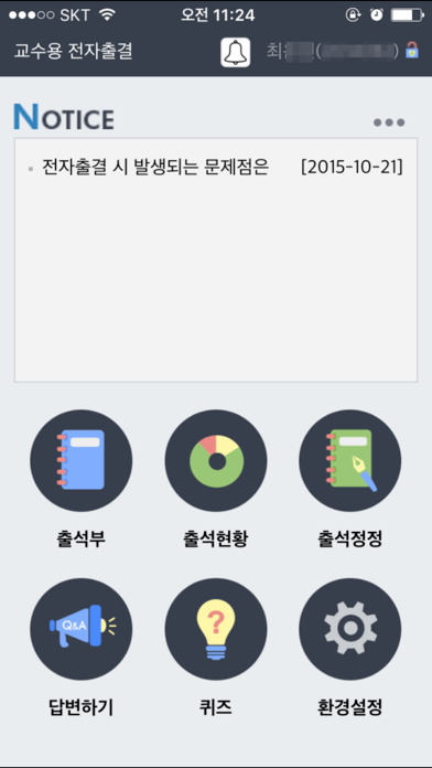 성결대학교 내에서 사용 할 수 있는 모바일 전자출결 앱입니다. 모바일 전자출결 앱을 활용하여 학생은 시간표를 토대로 강의 출석을 하실 수 있으며, 교수님은 출결 관리를 하실 수 있습니다. 성결대학교 학사 정보 시스템 로그인 계정을 그대로 사용하여 로그인 하실 수 있습니다. 제공하는 주요 기능은 다음과 같습니다. 학생용 전자출결 시스템 - 공지사항 : 시스템 공지 및 교수님 전달사항 확인 - 출결 기능 : 강의 시간에 모바일 단말기로 출결 - 시간표 : 강의 시간표 확인 교수용 전자출결 시스템 - 출석부 : 출석현황 확인 - 질문하기 : 수업시간 중 질문사항 등록기능 - 실시간 퀴즈 기능