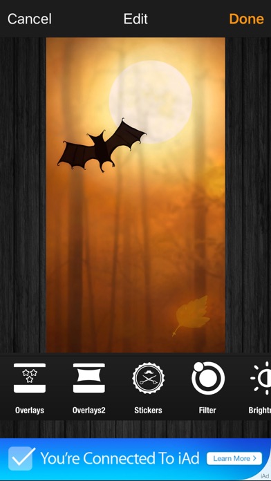 BOO! Get into the halloween season with awesome, scary lock screen and home screen wallpapers! Change that boring lock screen you have now and get spooky halloween theme on your phone/pad. Choose from totally frightening wallpapers! Add text, filters, and more to your photos with the exciting new photo editor were you can customize you photos! Get started now!