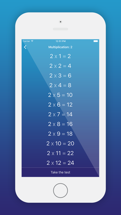We all use math in our every day lives and lets be honest, most of us can't remember half of the equations, if this is you or perhaps your just looking to improve your basic knowledge of math then this is the app for you! We've created a easy to use math app which allows you to challenge your knowledge by taking random tests based on basic mathematical equations. We have included Addition, Subtraction, Division and Multiplication tables from 1 to 12 which will allow you to hone your skills. Just to make things a little more interesting, We have a timer running, allowing us to show you how fast you are! We are also tallying all scores to give you an overall percentage
