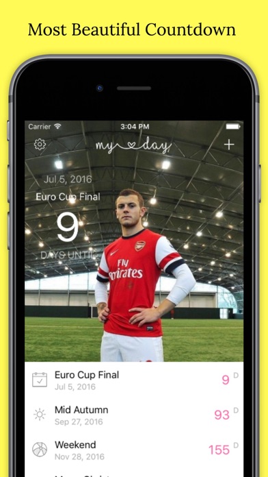 Count down to your next event - your next vacation, your favorite band’s concert, the next movie premiere, your child's graduation, your anniversary, and more - in style. Use countdown app for: * Birthdays and anniversaries * Wedding and child birth * Vacations and travels * Proms and holidays * Christmas and New Year * Retirement * Events * And much more! Application's unique features: * Supports countdown to events and counting up once they arrive * Toggle between time in days and years/months with a single tap in each event * Seven default categories (Event, birthday, entertainment, holiday, life, love, and study) * Voice memos to record your thoughts for each event * Set your favorite event as cover * Ability to sort events by time * Customizable background for each event * Customizable position show for each event * Color-coded navigation bar (your favorite event) * Share your joy with friends on Facebook, Twitter, Instagram, and via emails or text messages * Today widget extension * Absolutely free unlimited events