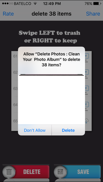 Clean your Photo Album is more easy with "Delete Photos : Clean Your Photo Album " App ! By swipe your photos you can delete photos quickly and easily ! Get some free space on your iphone with this awesome App . There is no Ads or in App purchase so when you buy this app you access to all features without extra cost .