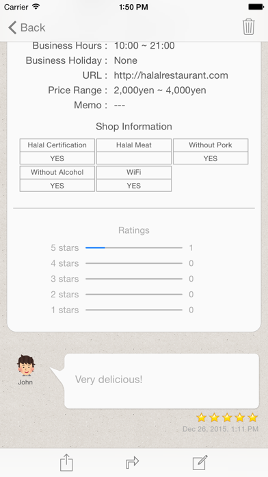 This is highly recommended for anyone looking for halal food and services! This is a tool to create a community of halal sharing information between users. You can easily find halal near you by using the GPS locater. The concept of this app is for sharing information between users. Register and share information when you find a place to share with. You can easily find a Muslim friendly place on the map that provides halal food and services. Muslim friendly locations and information can be shared through SNS (Facebook, Twitter, LINE, etc) to share information. [Halal searching and halal pin function] ■ It can find a location with halal and search a route to get there by using the GPS locater of the map. ■ Tap on “Halal pin” to get information of halal on the map. ■ ■ Tap on the “location mark”, put your cursor where the vending machine is and tap on the ADD button to type new “Halal” information and create a new “Halal pin”. **Creating “Halal pins” mischievously is disturbing the public peace refrain from doing that.** ■ Tap on the “magnifier mark” to tick the toilet you want to use and search more about the halal’s advanced details. ■ If the information on the “Halal pin” that is already pinned on the MAP is old, you can upgrade it to the latest information by tapping the old “juice pin”. ■ Comments and camera functions are installed, so please feel free to make comments about when you used them, upload photos, upgrade it to the latest information and create a new “Halal pin” to share information.
