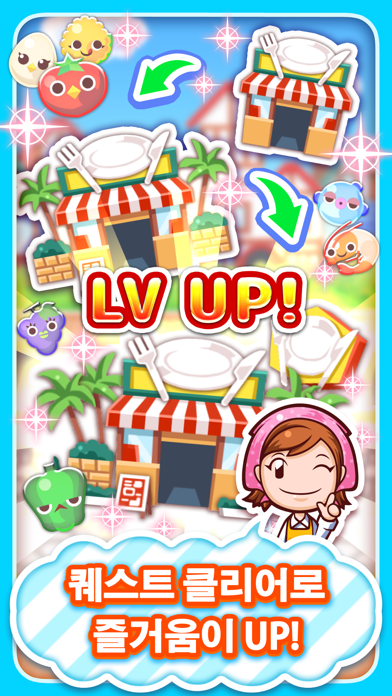 배가 고픈 게스트들이 기다리고 있습니다. 자, 냄비 속 식재료를 조리해서 그들을 만족시켜보아요! ▼Foo-Don 상점이 오픈됐어! Foo-Don 상점에서만 얻을 수 있는 새로운 스킬의 Foo-Don이 늘었어 새로운Foo-Don 스킬을 꼭 체험해봐! 새로운 Foo-Don은 게임 내 코인으로 교환합니다. ▼간단! 상쾌! 요리 퍼즐 게임! 퍼즐 초보자에서 상급자까지 즐길 수 있다! 퍼즐 액션으로 요리해서 당신의 가게를 크게 만들자! ▼게임 소개 룰은 간단! 식재료 캐릭터 "Foo-Don"을 3개 이상 연결해서 탭 하면 요리 완성! 연결된 Foo-Don을 길게 누르면 붙어서 커다란 Foo-Don으로 변신! 커진 Foo-Don을 요리하면 득점 UP! 상쾌한 붙이기 조작으로 Foo-Don을 크게 만들어 고득점을 노리자! 퍼즐 퀘스트를 클리어하면 가게가 점점 더 성장한다! 당신의 요리를 기대하며 파파나 스페셜 게스트가 방문! 요리를 잔뜩 만들어서 가게에 찾아오는 손님을 만족시키자! 선물을 받을 수 있는 찬스 등, 즐거운 이벤트도 한 가득! 쿠킹마마 Let's Cook Puzzle은 무료로 플레이할 수 있지만, 앱 내에서 사용할 수 있는 편리한 티켓을 구매하실 수도 있습니다. 【추천환경】 iOS 7.0 버전 이상이 필요. 위 조건을 만족하는 경우라도 일부 기기에서 이용할 수 없을 수도 있습니다. 【대응언어】 한국어 독일어 유럽 스페인 영어 이탈리아어 일본어 중국어 (간체) 중국어 (번체) 포르투갈어 (브라질) 포르투갈어 (유럽) 프랑스어 아랍어 네덜란드 필리핀어 인도네시아어 말레이어 러시아어 타이어 멕시코 스페인어 이 게임을 다운로드한 시점에서 고객이 당사의 게임 이용 약관에 동의한 것으로 간주합니다.