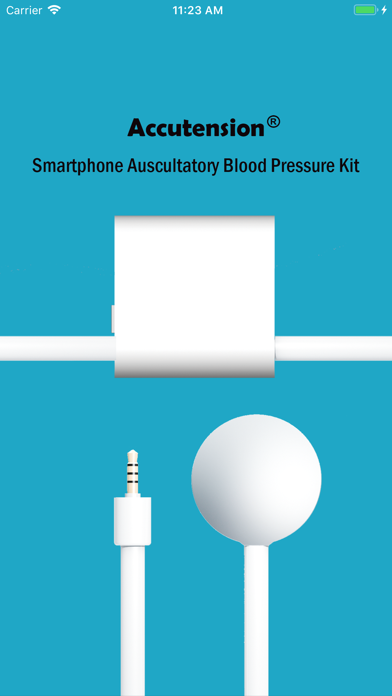 Accutension is a Smartphone Auscultatory Blood Pressure Kit, or manual BP on the phone. According to a clinical research published in American Journal of Hypertension (https://academic.oup.com/ajh/article/30/7/683/3739803/An-Assessment-of-the-Accuracy-of-Home-Blood), 36% home blood pressure monitor users can not get accurate reading with their own device, because of the intrinsic design problem. The invention of Accutension is to improve blood pressure measurement accuracy. Accutension improves accuracy by employing doctors' blood pressure measurement method. Doctors use a stethoscope to listen to the sounds of blood flow pulse to find out blood pressure values during BP cuff deflation. Accutension uses the same method but even better because, 1. Accutension records the sounds (Korotkoff sounds) of the blood flow pulse during measurement; 2. Accutension visualizes the sounds, so you will see the sounds on your phone screen when you hear the sounds; 3. You can playback the sounds after measurement to re-confirm the blood pressure readings; 4. You can email the measurement raw data including the sounds to a medical professional to double confirm the reading if you are not sure. Accutension is different from those automatic blood pressure monitors that do not sense the sounds. The automatic blood pressure monitors normally use oscillometric algorithms to estimate blood pressure values. Different manufacturers use different algorithms and could give very different readings. Accutension is different from those smart blood pressure monitors, which mainly use smartphone to store the readings. Accutension uses the smartphone as a part of the instrument to find the readings other than just store the readings. Except this big difference, Accutension has the same features as other smart blood pressure monitors. For example: 1. Accutension stores both the result and the raw data, so all the measurement result can be traced back; 2. Accutension can show the visual trend of blood pressure on daily, weekly, monthly and yearly basis. Start to get accurate blood pressure readings now.