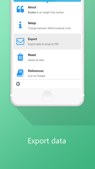 You want to successfully lose weight and evaluate the success of your diet? Scalee is a dedicated app to help you track body weight & body mass index (BMI) - we make it extremely easy to record your weight in just a few clicks. We also show your weight change in a graph and calculates the relative change in percent and the absolute change in kg/lbs. ◆◆◆◆◆ "A simple & easy weight tracker. I use it to track weight for my doctor. Highly recommended." ◆◆◆◆◆ "I love the simplicity of this app. Nothing big and bulky just nice, clear, and simple. Well done.” ◆◆◆◆◆ "Keep me in control of my weight loss." MAIN FEATURES √ Adding measurements are quick and easy √ No redundancy - Intuitive and easy to use user interface √ Follow changes in weight and BMI √ Use metric or imperial units (kilogram or pund) √ Data export to excel (CSV file) √ Everything included (NO in-app purchases) Scientific studies have shown that tracking / recording progression help in weight loss. This app can be used in relation to fitness, bodybuilding, cosmetic weight loss and in medical condition where weight loss or weight gain is part of the treatment such as: Diabetes, COPD, Obesity etc.