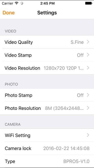 The B-PRO5 app is for controlling your Brica B-PRO5 AP Action Cam by using iPhone or iPad. You can connect your Brica B-PRO5 AP by using iPhone or iPad with B-PRO5 App, after established the connection, fully control your B-PRO5 camera function, take picture, record video, live stream, playback your photo, and download your media to share it on social media, email, Facebook, Twitter, and many more. Features: • Control your B-PRO5 functions from your phone/tablet. • See what your camera sees with live preview and live stream. • Wirelessly burst photo shot. • Wirelessly delay photo capture. • Wirelessly change the video quality and resolution. • Wirelessly change the image size and quality. • Wirelessly change the white balance. • Wirelessly format the camera SD card. • Lists your photo & video files to download or delete it. • Share via email, text, Facebook, Twitter, or other app. • Automatic time correction with iPhone or iPad when the connection is established. • Preview streaming is more smooth. • Support iOS9. • Support video playback with audio before download. • Support upside down view. • Support time-lapse video recording. • Support slow motion video recording. P.S. Some features are depending on camera device. Please make sure your camera have these features. Compatible only with Brica B-PRO5 Alpha PLUS