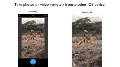 * Launch Promo 50% Off In-App Purchase * Simple and easy to use remote camera. Features: *Take photos and video remotely from any iOS device with camRE installed, using Wi-Fi or Bluetooth. *Not setup required. *Choose the image or video quality. *Choose any image to be you background.