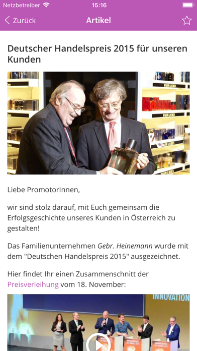 Die Brand Embassy Promotionagentur GmbH (www.brandembassy.at) stellt Mitarbeitern, Kunden und Partnern eine App zur Verfügung. Diese App enthält allgemeine Informationen, Arbeitsanweisungen, sowie spezielle Informationen zu Promotions/Projekten (z.B. Schulungsunterlagen). Auch Personalveränderungen sowie Reviews zu abgeschlossenen Promotions werden hier veröffentlicht. Die Inhalte sind sowohl am Desktop als auch mobil (Smartphone und Tablet) abrufbar. Funktionen: - Nachschlagewerk: Nutzer erhalten per Push-Nachricht alle Neuigkeiten und können auf den Seiten Produkt- und Promotioninformationen nachlesen. - Interaktion: Nutzer können Neuigkeiten kommentieren und “liken” sowie Lesebestätigungen übermitteln, insofern dies angefordert wird. Anmeldung: Die Anmeldung ist auf 2 Wegen möglich: a) Sie erhalten eine Einladung per Mail und registrieren sich daraufhin (es wird keine Firmen-Mailadresse benötigt) oder b) Sie erhalten einen alphanumerischen Code und können diesen dann zur Registrierung nutzen. Wir wünschen viel Spaß bei der Nutzung unserer App! Anregungen und Fehlermeldungen bitte an [email protected] senden.
