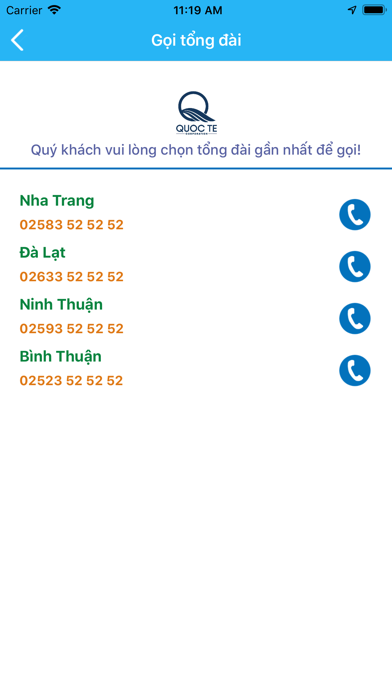 Là ứng dụng cho phép bạn yêu cầu tài xế riêng chỉ với một thao tác chạm vào màn hình tại khu vực tỉnh Nha Trang, Ninh Thuận, Bình Thuận, Lâm Đồng. Tính năng : • Nhanh chóng và Tiện lợi: Thao tác đặt xe nhanh, tính năng đơn giản, hiệu quả, thân thiện và dễ sử dụng. Cung cấp đầy đủ thông tin của xe phục vụ và hành trình của chuyến đi. Mỗi khi bạn cần xe, tài xế sẽ đón bạn chỉ trong vài phút Lưu lịch sử chuyến đi để hỗ trợ khách hàng tìm kiếm hành lý thất lạc hoặc giải quyết khiếu nại. • An toàn : Quốc Tế Taxi đào tạo lái xe chuyên nghiệp và sàng lọc kỹ lưỡng những lái xe có kỹ năng tốt nhất để đảm bảo an toàn cho khách hàng. • Phục vụ chuyên nghiệp : Quốc Tế taxi là đơn vị hàng đầu về các dich vụ trên xe như Wifi, khăn lạnh miễn phí…Xe đời mới, sạch và đẹp! Khách hàng có thể gởi đánh giá, góp ý ngay trên ứng dụng để Quốc Tế taxi điều chỉnh nằm nâng cao chất lượng dich vụ.