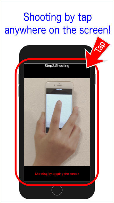This camera app is the full screen is a shutter. ・If you want to shoot your back of the head or forehead or eyelashes, etc., when you want to press the shutter without looking at the screen. ・If you have a souvenir or a bag and want to shoot it only with one hand. ・If you want to shoot raise your hand at the crowd. Shooting in three steps.Because the entire screen is a shutter. 1: Set Camera selection. Set the flash and timer. When zooming, select “Adjust”. Set the saving method to the photo. ‘Check’ and to save from. ‘immed’iately save. ‘Star’ continuous shooting. ※The end of the shooting, please press the Home button. 1.5: Zoom Set the zoom. 2: Shooting Even if you press anywhere on the screen is a shutter. 3: save Save in the photo. you can send Twitter, facebook, such as e-mail. ※: Shutter sound will play always. ※: Location information is not recorded. ※: Ad will be displayed when the setting screen is displayed.