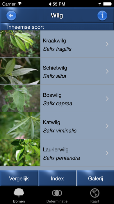 De gids is gemaakt door professionele ecologen, accepteer dus geen goedkope imitaties. Onze app bevat niet alleen meer boomsoorten dan andere apps, hij bevat ook de juíste boomsoorten. Details van de boom kunnen vanuit een gemakkelijk te gebruiken lijst worden bereikt, of de identificatieformulieren kunnen worden gebruikt. Voor de identificatie stelt de app een korte serie vragen over de boom. Op basis van de antwoorden berekent hij een korte lijst van de bomen die het meest in de buurt komen. De gebruiker krijgt een geschat percentage te zien dat de waarschijnlijkheid dat de boom correct is, weergeeft. Als u op een boom in de lijst klikt, worden de details over de boom weergegeven. Bomen kunnen ook met elkaar vergeleken worden. De app heeft geen internetconnectie nodig: de gehele inhoud wordt gedownload bij aanschaf van de app. Hoewel de app meer dan 400 foto's bevat, hebben we ons eigen unieke beeldoptimalisatiesysteem waarmee de grootte van de app tot een absoluut minimum beperkt blijft. De gematigde zones van Europa die opgenomen zijn in deze app bevatten de loofbossen en gemengde bossen van Nederland, België, Frankrijk, Duitsland, Denemarken en Groot-Brittannië. De alpine gebieden en Mediterrane landen worden niet gedekt, omdat deze gebieden een heel andere ecologie kennen.