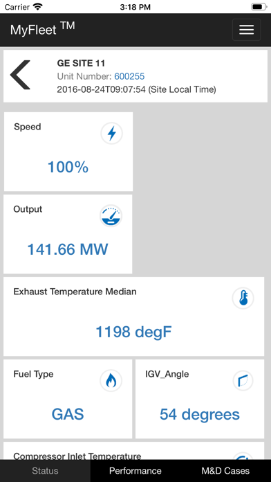 MyFleet in My Pocket! This Industrial Internet app enables GE Power Services customers to view health and performance data real-time for their monitored equipment. Power Plant managers and owners can stay connected, be in control, and have 24/7 access to their Gas Turbine fleet.