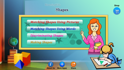 This program uses shape names and pictures to help the student to learn listening, identifying, and naming skills. There are 4 sub-programs. 1. Matching Shapes Using Pictures Here a shape is shown at the top of the screen. The student is asked to click on the matching shape shown among others at the bottom of the screen. 2. Matching Shapes Using Words This program runs like “Matching Shapes Using Pictures,” but instead of pictures, words that name the shapes are used. The student is required to click on the correct word which represents the shape shown at the top of the screen. 3. Discriminating Shapes The student is asked to find and click on the correct shape as shown on the screen. 4.Making Shapes An incomplete shape appears at the top of the screen. The program asks the student to complete the shape. The student chooses the correct piece from underneath the incomplete shape to add to the incomplete shape to make the complete shape. Settings Level 1 One shape appears at the top of the screen. One shape is shown at the bottom of the screen to be matched with the one at the top, without any distracter. Level 2 Two pictures are shown at the bottom of the screen to be matched with the one at the top of the screen. Level 3 This level is selected by default. Three pictures are shown at the bottom of the screen to be matched with the one at the top of the screen. Shape Type Filled The shapes shown on the screen are filled when this option is selected. Unfilled The shapes on the screen are empty. The outlines of the shapes are in black. The color options, “Same Color” and “Different Color”, are disabled when “Unfilled” is selected. Same Color The shapes shown on the screen are all in the same color. When shape type “Unfilled” is selected, this option is disabled. Different Color The shapes shown on the screen are all in different colors. When shape type “Unfilled” is selected, this option is disabled. Shape Type Filled The shapes shown on the screen are filled when this option is selected. Unfilled The outlines of the shapes are in black. The color options, Same Color Shapes shown on the screen are all in the same color. Different Color When this is selected, the shapes shown on the screen are all in different colors. Command Text A short command text is visible at the bottom of the screen. User Defined This feature allows the teacher/parent to customize the screen by selecting particular matching shapes and distracters and choosing their locations on the screen. Prompt If the student fails to match the correct shape within ten seconds, the program guides him/her to the correct shape. Prompt with Blink If the correct shape picture is not chosen after ten seconds, it blinks. Prompt with Label The names of the shapes appear below the pictures. Congratulatory Animation Clicking the correct shape invites a congratulatory animation. Selection Click on this check box to select or deselect the shapes. Select All Check this box to select all shapes. Uncheck to deselect. Training This program uses colors to train listening and matching skills. Test Here, the student can test him/herself. Report This displays results of the “Test”. The report (Holds Only 20 Records). Grade On/Off: If it is on, app will monitor correct and wrong responses by the student Correct Answer: When a student response to a question with correct answer Wrong Answer: When a student response to a question with wrong answer Number of Total Attempt: Number of times a student tried to answer questions in the app. Bar Chart: Represents the student's performance graphically. Detail Report: Test results including the grade. object identified, distracter and time taken to finish the test. Print: This will print the grade or data on the screen. Clear Data: This button erase all the data that was stored and free up the memory that data was occupying.