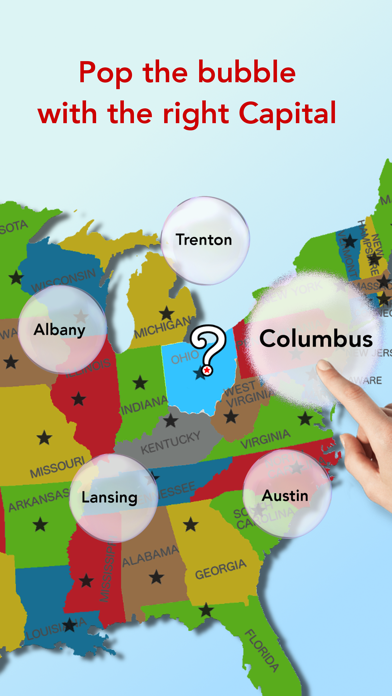 U.S.A. States and Capitals. Can you name and locate them all ? "US bubbles" helps you to learn: - The States: Name and location of each State - States to Capitals: Name of the Capital, given the State - The Capitals: Name and location of each Capital ... as easy and engaging... ... as popping bubbles !!! Finish the rings quicker and quicker. Save your time records in Game Center leaderboard. - & enjoy the bubbles ;)