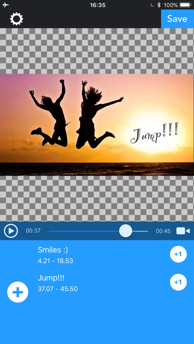 MojiMov let you to put text/subtitle on your video. -- How to use. 1. Select your video. 2. Slide seek bar to the time you want to put text. 3. Press "Text" button. 4. Input text and press "OK". -- How to edit text. - Drag text to place where you want to put. - Pinch text to change text size. - Tap text to show edit menus. -- Text editing menu - Tap start / end time to change. - Tap start / end animation to change another one.