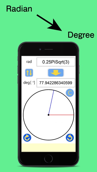 「Deg2Rad ~도와 라디안을 상호 교환~」은 도수법(도)으로 입력한 값을 호도법(라디안)으로, 호도법으로 입력한 값을 도수법으로 변환합니다. 또한, 그림으로 각도를 표시하기 때문에 확인하기 쉽습니다. 본 애플리케이션의 사용으로 인해 발생하는 손해나 제삼자로부터의 청구에 대하여 저자는 일체의 책임을 질 수 없습니다.