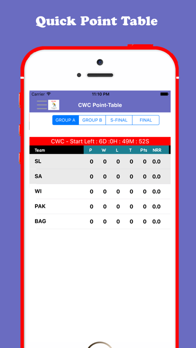 CWC T20 is biggest sports festival in Cricket Tournaments. CWC 2016 Schedule Includes the Following Features: ● Live ball-by-ball scores & commentary ● CWC 2016 Match Schedules ● Points Table ● CWC History ● CWC Photo Gallery ● Statistics ● Social features ● Previous CWC Results & Stats ● Orange Cap & Purple Cap of Every Season of CWC . ● User friendly GUI * Application is absolutely free to use for every one. * This is not the official Application of Cricket World Cup(CWC) and does not intend to portray as such but it is our much effort to serve you better. Thanks & Best Regard, K&P Team