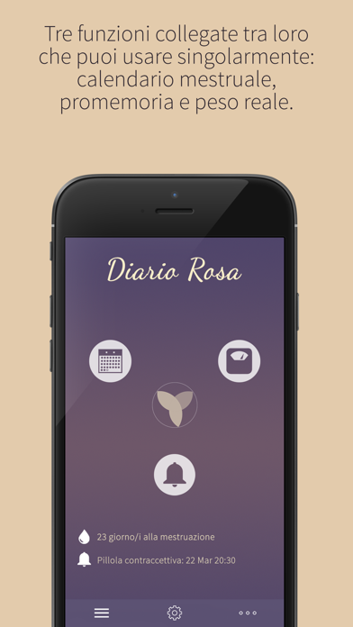 Il “Diario Rosa” ti consente di monitorare in maniera molto semplice il ciclo mestruale e gli altri avvenimenti collegati al ciclo, di registrare e tenere traccia nel tempo del tuo peso, dell’assunzione del contraccettivo, del sanguinamento intermestruale e di episodi di dolore, e può supportarti per il consulto con il tuo medico. Perché il “Diario Rosa” ti offre di più? - Completamente gratuito – utilizza tutte le funzioni della app senza acquisto o registrazione - Interfaccia facile da utilizzare - Moderno – schermate grafiche intuitive e con un design alla moda - Personalizzabile - Credibile e affidabile - Multifunzionale – tre funzioni interconnesse che puoi utilizzare anche singolarmente: calendario mestruale, promemoria, peso reale - Puoi registrare facilmente gli episodi collegati al tuo ciclo mestruale - I promemoria devono essere impostati una sola volta – dopo aver completato le impostazioni iniziali l’applicazione invierà i promemoria automaticamente - L’applicazione è continuamente aggiornata con nuove funzioni che tengono conto dei desideri dell’utente - I dati inseriti nel “Diario Rosa” possono essere facilmente visualizzati per supportarti nel consulto con il tuo medico - Password personalizzabile per proteggere la tua privacy - Non archiviamo i tuoi dati. Il back-up avviene automaticamente sul tuo account iCloud/Dropbox * Dichiarazione di esclusione di responsabilità: questa applicazione non è da intendersi per finalità diagnostiche. Funzioni principali: Calendario: - Facile da utilizzare, chiaro - Visualizzazione giornaliera, mensile e grafica (1, 3 o 6 mesi) - Tieni traccia dettagliata del sanguinamento mestruale e intermestruale e del dolore - Monitori il tuo ciclo mestruale e i giorni stimati di ovulazione e fertilità - Registri il tuo peso e i farmaci da assumere Peso reale: - Tieni traccia delle tue variazioni di peso - Grazie alle informazioni inserite su peso e altezza, controlli il tuo indice di massa corporea Promemoria: - Imposti promemoria personalizzati, promemoria sul ciclo mestruale e per l’assunzione della pillola contraccettiva o di altri farmaci Impostazioni: - Inserisci la tua altezza e i dettagli sul tuo ciclo mestruale, gestisci i tuoi dati aggiornati (esporti, importi, cancelli) e attivi la tua password personale Raccomandiamo in particolare l’utilizzo del “Diario Rosa” alle donne che: - desiderano registrare tutti gli episodi più importanti collegati al proprio ciclo mestruale per essere in grado di rispondere in maniera scrupolosa alle domande del medico durante la successiva visita di controllo - necessitano di un promemoria per la pillola contraccettiva o per altri farmaci, che sia affidabile, facile da utilizzare e personalizzabile, ed anche in grado di aiutarle a monitorare l’assunzione dei farmaci - desiderano essere organizzate