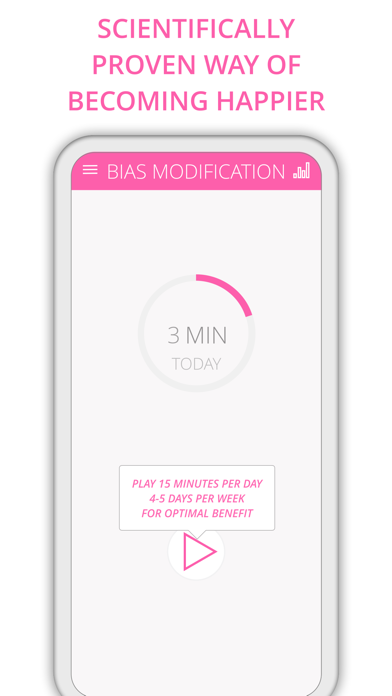 Bias Modification is a game making you happier and it is backed with scientific research. An optional premium upgrade is available through a one-time in-app purchase that will remove ads, allow to view your progress and play longer than one minute rounds. To get bugs fixed as fast as possible, please use the FEEDBACK button in the game's HELP screen. The more (and precise) information you provide for reproducing the bug, the faster it will be fixed. WHAT IS COGNITIVE BIAS MODIFICATION Cognitive bias modification (CBM) has been shown to help overcome the tendency to focus on negative or threatening social cues. CBM does this by making you repeatedly select positive over negative information. FEATURES - Familiar match-three gameplay - Test you improvement - View test results (included in the Premium upgrade)
