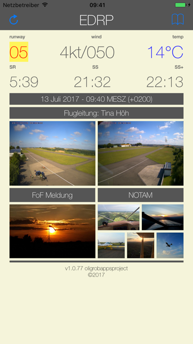 App für den Flugplatz EDRP in Pirmasens auf der Pottschütthöhe. Die App liefert aktuelle Informationen zum Flugplatz. - Aktuelle Landerichtung, Landebahn, Tankstelle, Info Frequenz, SR, SS, Wind. - Flugplatz Informationen wie Telefonnummern, Gaststätte, Öffnungszeiten - Wetterinformationen (Text und Sprachausgabe) - Wetterforecast für die nächsten 5 Tage - Sunset Zeiten Forecast für die nächsten 7 Tage - Webcams von der Landebahn - NOTAM Informationen zum Platz - Erfassung einer Start / Lademeldung für Fliegen ohne Flugleiter (Registrierung notwendig und nur für Ortsansässige verfügbar)