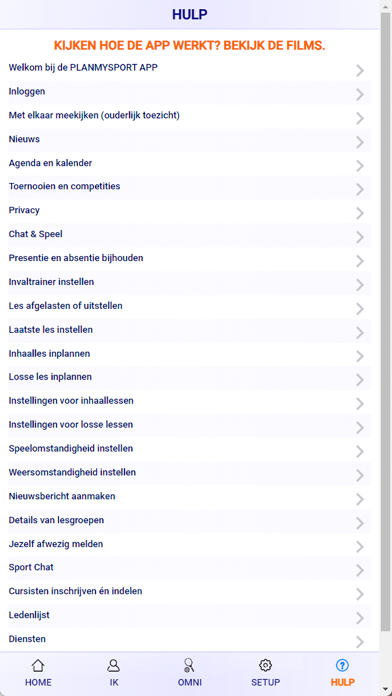 PLANMYSPORT is de meeste complete alles-in-één oplossing voor de sportwereld. Deze app biedt selfservice mogelijkheden voor trainers, cursisten, leden en abonnees van verenigingen, sportscholen en sportcentra, zoals lesgroepen, presentie en absentie bijhouden, ledenlijsten, nieuwsberichten, evenementen, toernooien, competities, online inschrijven en reserveren, chatten via Sport Chat, afspraken maken en foto- en videoalbums.