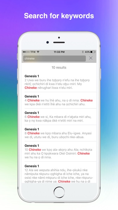 The FASTEST Igbo Bible app and most efficient way to read & study the Bible. Quickly navigate to any verse and easily access tools to help further your understanding of the Bible. Igbo is one of the four official languages of Nigeria and is a member of the Volta-Niger branch of the Niger-Congo family of languages. It is spoken by about 18 million people in Nigeria and Equatorial Guinea. Igbo Bible available today & English. It is suitable for public and private reading, teaching, preaching, memorizing, and liturgical use. FEATURES: • Take Notes offline • Highlight or Underline words & entire verses • Bookmark Verses • Add Margin Notes • Full Screen Immersive Mode by a simple double tap • Folders to organize your notes & bookmarks • Offline (No Internet connection required for downloaded Bibles) • Search the Old & New Testament to find verses containing the entered keyword • Night mode for low-lit reading areas, Day mode and Sepia mode. • History folder to access past 50 viewed verses • Split-screen mode to read two Bible translations at once (Igbo and English) • Share verses & notes • Bible talks to you! New Testament drama Audio • Change font size and font type • Auto scroll allows the Bible to scroll automatically • Cross References & Footnotes by long-pressing on dotted-underlined words & superscript letters. Check out for Other bible translations in our store. Brethren, spread the word of the Lord by letting friends, parents, love ones and everybody knows that by God’s grace Igbo Bible and Audio is also Available. Don’t keep this for only yourself, but spread the word. God Bless you!!