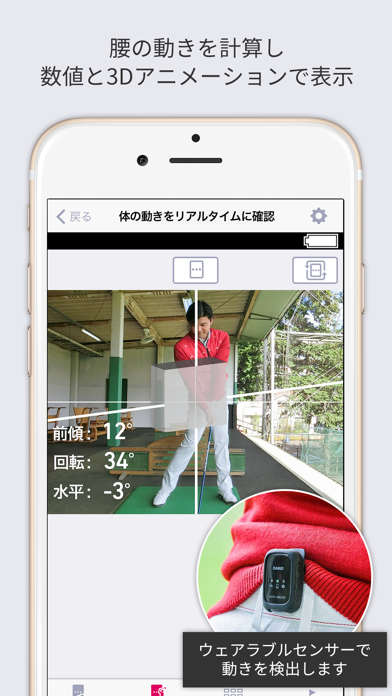 “EXILIM Connect for GOLF”は、CASIOのWi-Fi/Bluetooth機能付きのデジタルカメラ“EX-SA10”とウェアラブルセンサー”CMT-S10G”を利用して、iPhone/iPadをデジタルカメラのリモコンとして使用したり、スイング画像や計測値をiPhone/iPadにコピーできる便利なアプリケーションです。 【主な機能】 ・リモートで操作する :iPhone/iPadを使用して、離れたところからカメラを操作し撮影できます。 :ゴルフスイングをハイスピード動画できます。 :ゴルフスイングの撮影に便利なゴルフベストショットを6シーン搭載し、人型のガイドに合わせて撮影できます。 :動きを感知してセルフタイマーを動かすモーションシャッターで自分撮りが簡単にできます。 :スイング動画の前後を自動でカットする、ムービーカットを搭載しています。 :ウェアラブルセンサーを使用するとスイングの計測と、前傾・回転・水平の角度表示ができます。 :ウェアラブルセンサーを使用するとアドレスを検出して撮影を自動で開始します。 ・スマートフォンにコピーする :カメラで撮影したハイスピード動画を、自動でiPhone/iPadにコピーしたり、選んでコピーできます。 ・EXILIM Analyzer for GOLF呼び出し機能 :撮影したハイスピード動画を分析するアプリEXILIM Analyzer for GOLFを簡単に呼び出すことができます。 【対応デジタルカメラ】 ・EX-SA10 【対応ウェアラブルセンサー】 ・CMT-S10G 【対応OS】 iOS 8.0 – 13.2 【補足事項】 ・本アプリケーションは、対応のデジタルカメラEX-SA10もしくはCMT-S10Gがないと動作いたしません。 ・Bluetoothを使用した機能は、Bluetooth 4.0に対応したiPhone/iPadで可能です。 ・本アプリケーションの詳しい使い方は、EXILIM Connect for GOLF 取扱説明書(http://support.casio.jp/dc/manual/app_connect_golf_ja/)をご覧ください。 ・カメラの詳細な操作方法については、EX-SA10本体付属の取扱説明書をご覧ください。 ・位置情報は、カメラと通信を行うために必要です。 -------------------------------------- EXILIM Connect for GOLFのサポート▶ ※リンク(http://casio.jp/support/dc/)