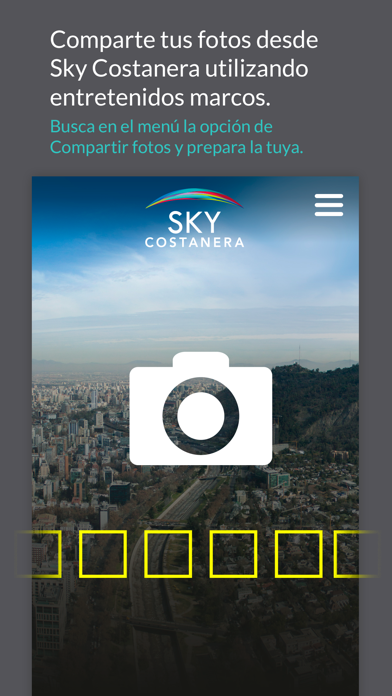 Vive la experiencia de Sky Costanera con nuestra aplicación móvil y complementa tu visita a nuestra Torre Costanera a través de una vista interactiva que te permite conocer los edificios históricos, puntos de interés turístico, hitos naturales y las ciudades del mundo. Conoce además Santiago de Chile en distintas épocas del pasado, descubriendo puntos históricos que no conocías y viendo el paisaje urbano en 4 periodos del pasado de la ciudad. La vista en 360 grados te permite revivir la experiencia visual de estar en Sky Costanera tanto en el día como en la noche. Accede a promociones exclusivas, comparte tus fotos en redes sociales agregándole entretenidos marcos y entréganos feedback sobre tu experiencia de visita y así poder mejorar nuestro servicio para nuevos visitantes. Disponible en español, portugués e inglés, te invitamos a ver Santiago como nunca lo viste.