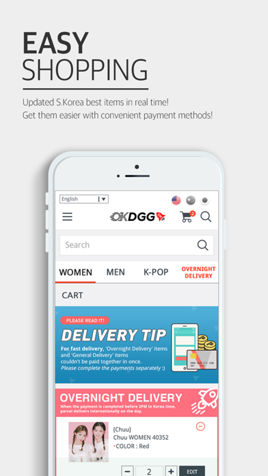 1. Overnight Delivery : OKDGG is operating 'Overnight Delivery' too, which means you can get S.Korea genuine items in fast and safe with gurantee delivery. They are shipped out in 2 business days from S.Korea. 2. Competitive Price : OKDGG provides the lowest price to the customers. Besides, if you utilize OKDGG coupon and FREE SHIPPING event, you can ultimate the beneifts from OKDGG. - Overnight Delivery + Cheapest Price + Free World-wide Shipping + Various Promotions & Coupons + Extra benefits 3. OKDGG with Trend : We sellect the items in 'Overnight Delivery' and the providers after serious considering. Actually, most of the items selling in OKDGG is the best products from each Top online shops in South Korea. Only the chosen items from South Korean and qualified items by OKDGG are on sale for 'Overnight Delivery'. OKDGG is the sole platform, can provide the cheapest price on best items with various promotions and fast and safe delivery. If you feel uncomfortable for delivery and out-of-stock, you can trust us now. ■ Notification of application access authority According to article 22 of 2 from 「The law regarding the promotion of information and communication network use and protection of information」, we receive an agreement for ‘Application access authority’ by users with below purpose. Only essential entry for the service accesses obligatorily, and the contents are same with below. [Essential access authority] - UUID: Using device UUID for registration of push message [Selective access authority] - Camera/Album: Using when write a post including a video or picture