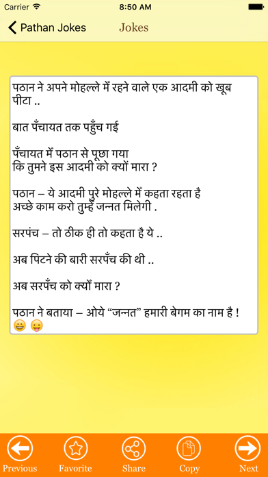 Have a laugh at thousands of hand picked funny jokes!! Have you ever been in a company through friends and family, telling each other jokes? 15,000 COOL JOKES is an app that will always give you more and more jokes to tell and laugh. And if you just feel like wasting 5 minutes, you can always open 15000 Cool Jokes and put the smile on : FEATURES : * Thousands of Awesome Funny Jokes in many categories like Hindi,English,Santa- Banta Jokes,Funny Jokes, Doctor Jokes, Teacher Student Jokes, Pathan Jokes or many more. * Easy PREV/NEXT navigation * Copy Text Content * Share Jokes on Social Media. * Category wise Jokes. * Add on your Favorites Jokes. Your feedback is appreciated and invited, as we are ever eager to learn, are happy to respond and believe in constant improvement. Your trust is safe with He He Jokes. That's a promise.