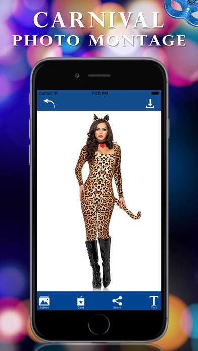 Carnival is festive season which involves a public celebration and parade. Sometimes this is combination of some elements of circus, maskenball and street party. It is very nice to go and visit some. But if you are not able to go, this photo montage app will help you to experience beauty of carnivals. Frame your selfie in suit you like the most, add some best photo effects, and get top picture from favorite carnival. How to use Photo Montage: * Select a photo from image gallery of take a new one * Choose Photo Montage frame you like the most * Adjust and montage your photo on best photo montage frame * Edit photo, rotate, zoom in, zoom out * Save model, set as wallpaper