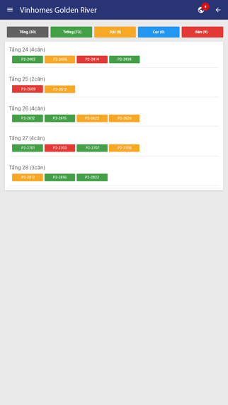 VinhomesRealEstate features: - Danh sách dự án căn hộ chung cư + Thông tin tổng quan dự án, bản đồ vị trí, tiện ích, diện tích xây dựng, mặt bằng tổng thể, chi tiết dự án, tiến độ xây dựng, chương trình bán hàng + Thư viện hình ảnh dự án, khuôn viên, căn hộ mẫu + Chính sách bán hàng dành cho Broker, chương trình khuyến mãi dành cho khách hàng… + Rổ hàng của sàn - Chính sách bán hàng chung của sàn bất động sản, chủ đầu tư dành cho Broker, khách hàng - Tin tức dự án, thị trường bất động sản, tin nội bộ - Thông tin căn hộ theo Block, tầng, loại căn hộ. - Chi tiết thông tin căn hộ - Công cụ tìm kiếm với các tiêu chí giúp Broker có thể tìm được căn hộ mà khách hàng mong muốn nhanh nhất - Quy trình đặt chỗ/cọc và bán căn hộ trực tiếp từ ứng dụng giúp Broker có thể tương tác trực tiếp với Sàn - Chức năng thông báo (Notification) cập nhật real-time thông tin đến các Broker và Sàn - Ứng dụng được kết nối trực tiếp và Real-time với hệ thống vận hành của Sàn Bất Động Sản