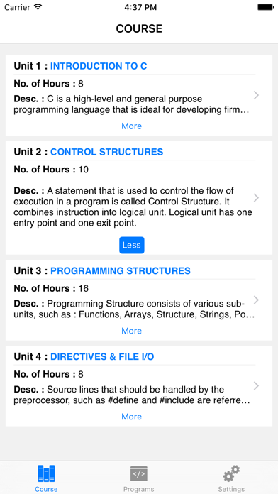 C Stack Pro provides you a platform to learn and expertise in C language. Your All-In-One solution to learn, practice and revise programming. ----------------- Features : • Offline C Notes. • Unit wise course distribution. • Syllabus matches to university standards. • Well detailed programs for better understanding. • Categorized chapters according to units. • Simple and crisp User interface. • Share feature. ----------------- Gone are the days where you have to carry a book all the time, C Stack Pro is a complete solution for C programming. This app provides notes for offline usage for free. It contains all the chapters divided into 4 units. The categorisation matches to all university levels. We have listed a programs which are tested and compiled. The user interface is designed for easy navigation and use. This app would be helpful for those preparing for exams, interviews or writing college and school exams. ----------------- If you have any query, mail us. We would be happy to solve your problem. :) We wish you all the luck. Never Stop Learning.