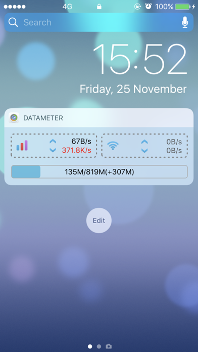 Lightweight dataflow monitor widget, fast, cool, Power, save money, clear without delay, Precision, monitoring mobile cellular(2G, 3G, 4G),WiFi data usage! √ Fast: lock screen, drop-down screen, Notification Center direct view real-time traffic data usage. √ Cool: Click the cellular traffic areas in Notification Center , to open or close the mobile cellular switch. √ Power:: no running in the background. √ Clear: the cellular network (2G, 3G, 4G) /WiFi, real-time dataflow traffic, monthly summary charts clearly show. √ Precision: My dataflow is accurate to the present time, without delay, the data unit Byte, automatic adaptation B, M, G units.