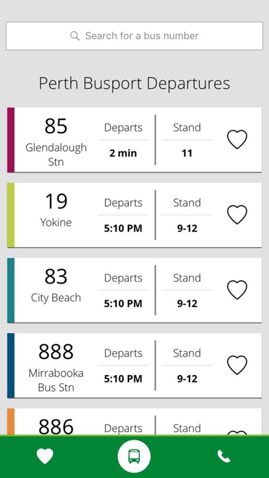 Welcome to the official Transperth app for up-to-date Perth Busport departure information on your iPhone. With this free app you can: * View your favourite bus departure times from the Perth Busport * View all upcoming departure times from the Perth Busport * Contact Transperth Depending on your mobile data plan, mobile data charges may apply as you use the app. Continued use of GPS running in the background can dramatically decrease battery life.